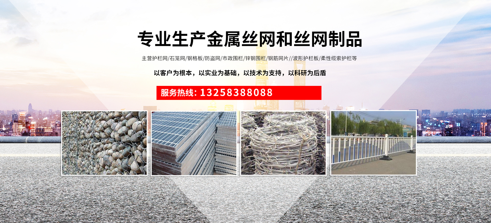 成都宏旭金屬絲網(wǎng)制造有限公司主營護欄網(wǎng)系列、石籠網(wǎng)系列、鋼格板、防盜網(wǎng)、市政圍欄、鋅鋼圍欄、鋼筋網(wǎng)片、聲屏障系列、波形護欄板、柔性纜索護欄、SNS邊坡防護網(wǎng)等其他絲網(wǎng)類產(chǎn)品。特殊規(guī)格可加工定做,也可根據(jù)客戶來圖來樣定做。自創(chuàng)業(yè)以來,公司一直堅持市場為導向,以客戶為根本,以實業(yè)為基礎(chǔ),以技術(shù)為支持,以科研為后盾,集科研、生產(chǎn)、經(jīng)營為一體,不斷研制開發(fā)新產(chǎn)品,開拓市場,走綜合發(fā)展之路。多年來,公司憑借過硬的質(zhì)量,良好的信譽、優(yōu)質(zhì)的服務、合理的價格,贏得了市場和商家的一致好評。